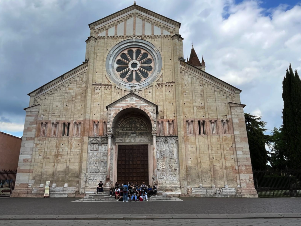 Non solo Romeo e Giulietta! Oggi la Seconda C delle Testoni Fioravanti alla scoperta dei tesori di Verona. Un momento di pausa davanti alla basilica di San Zeno prima di ripartire alla scoperta della città!